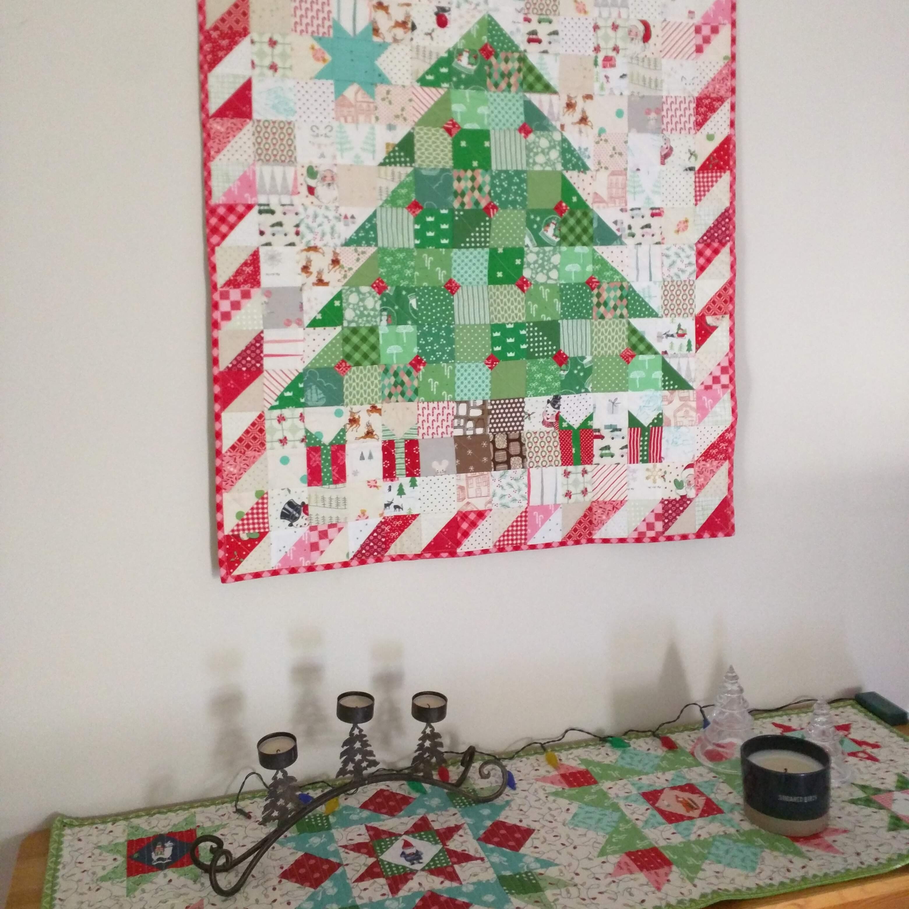 I wound up putting much of my efforts into quilts and quilted things. I knew that I wanted to make a tree skirt and a Christmas tree quilt. I started both last January and finished them in the summer. Other than that, I just let the Christmas whims take me as they would. Let’s have a look back over the year.